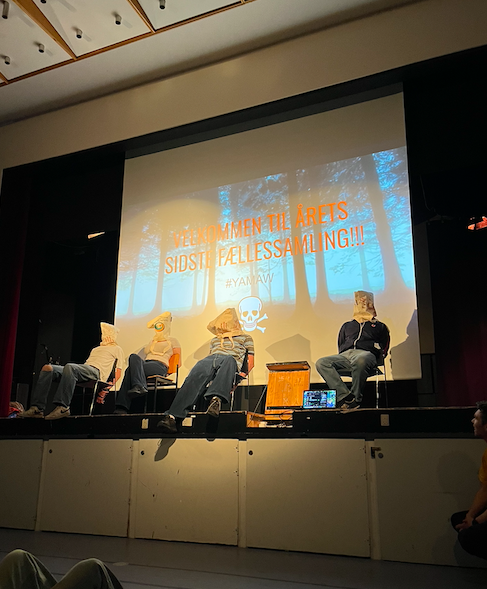 I går afholdt fællessamlingsudvalget skoleårets sidste fællessamling, og de sluttede af med et brag! Fællessang, kærlighedsbreve og talentinfo — pakket ind i sjov, ballade og ægte YAMAW-energi.